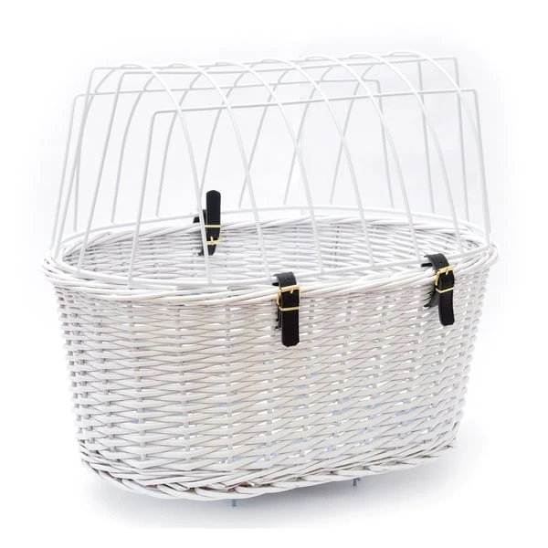 Bei diesem Modell handelt es sich um einen Korb, der auch ideal für größere und schwerere Vierbeiner geeignet ist. Dafür sprechen die Belastbarkeit von bis zu 15 kg und die großzügigen Maße mit einer Länge von über 50 cm. Durch die geflochtene, hochglanzlackierte Weide in weiß ist der Korb zudem stabil und die zusätzliche Ausstattung sorgt dafür, dass ihr Vierbeiner nicht nur bequem, sondern auch sicher mit unterwegs ist: Dafür sorgen die weiße Sicherheitsdrahtkuppel und die bequeme sowie waschbare Einlage.