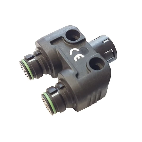 Daytime Verteiler zum Anschluss und Betrieb von bis zu 2 onex, matrix- oder pendix-Leuchten an einem Converter oder einer Lichtsteuerung. Belastbarkeit: 240 Watt @ 24VDC.