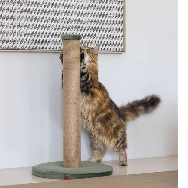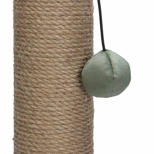 Die Designd by Lotte Kratzsäule Yenna ist nicht nur ein funktionaler Kratzbaum, sondern auch ein echtes Schmuckstück für deine Wohnung. Der Fuß der Kratzsäule ist mit weichem Samt bezogen und verleiht dem Raum eine gemütliche Atmosphäre. Der Kratzpfosten ist mit robustem Juteseil umwickelt, sodass deine Katze ihre Krallen daran wetzen kann. Damit trägt der Kratzbaum zur Krallenpflege bei und verhindert gleichzeitig, dass deine Katze ihre Krallen an Möbeln oder Teppichen schärft. Ein zusätzliches Highlight ist das Katzenspielzeug in Form eines Samtballs, das am Kratzbaum befestigt ist und für extra Spielspaß sorgt.