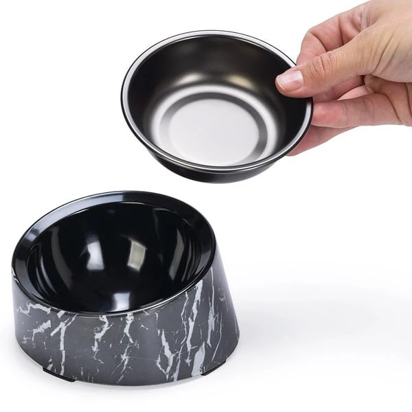 Der Vita Katzennapf enthält eine herausnehmbare Edelstahlschüssel mit matter Oberfläche. Diese Schale ist nicht nur hygienisch und leicht zu reinigen, sondern verhindert auch, dass Essensgerüche vom Material aufgenommen werden. Du kannst die Edelstahlschüssel ganz einfach in der Spülmaschine reinigen, um Zeit und Aufwand zu sparen.