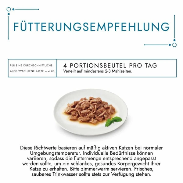 Fleisch und tierische Nebenerzeugnisse, pflanzliche Eiweißextrakte, Fisch und Fischnebenerzeugnisse (4% Forelle), Mineralstoffe, Zucker.