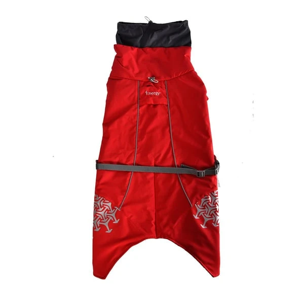 JUD – Die Winterjacke von iEnergy ist der ideale Begleiter für deinen Hund in der kalten Jahreszeit. Leicht anzuziehen und in der Größe verstellbar. Die Jacke besteht aus recyceltem Polyester und ist dazu noch hochwertig gefüttert, damit dein Hund nicht frieren wird. Die Jacke hat einen Kragen, welcher bei kaltem Wind, Schnee etc. hochgezogen werden kann und schützt viele Bereiche wie den Bauch sehr gut. Der hintere Bereich der Jacke hat einen hochwertigen reflektierenden Druck, für eine bessere Sichtbarkeit in der Dunkelheit.