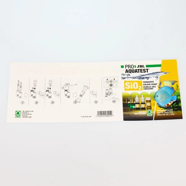 Schnelltest zur Bestimmung des Silikatgehalts in Süß- & Meerwasser-Aquarien. Silikate (Kieselsäure) sind die Ursache für unschöne Kieselalgen. Mit diesen Test bestimmen Sie den Silikatgehalt zur Kieselalgenkontrolle in Süß- und Meerwasser-Aquarien. Labor-Komparatorsystem zum Ausgleich von Wassereigenfärbung: Glasküvetten mit Probenwasser füllen, Reagenzien in eine Küvette zugeben, Küvetten in Halter platzieren, Werte auf Farbkarte ablesen. Anwendung: Bei Neueinrichtung, zur Leitungswasserkontrolle und bei Kieselalgenproblemen. Auf der JBL Homepage in der Themenwelt Aquarium finden Sie ausführliche Informationen zu Wasseranalysen und Problemlösungen. Lieferumfang: 1 Silikat-Test für ca. 50 Messungen. Inkl. 2 Reagenzien, 2 Glasküvetten mit Schraubverschluss, Dosierlöffel, Spritze, Komparatorblock und Farbskala. Nachfüll-Reagens separat erhältlich.