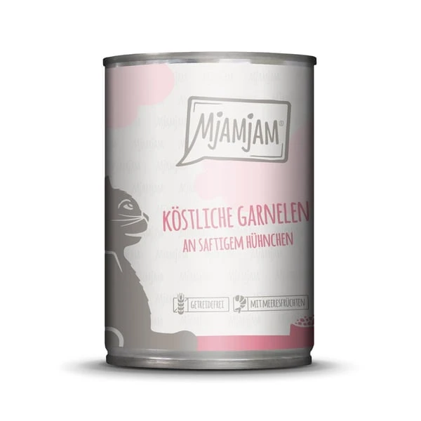 Hühnerfleisch, -leber, -herz, -muskelmagen (56%), Fleischbrühe (28,5%), Garnelen (14,5%), Mineralstoffe (1%)
