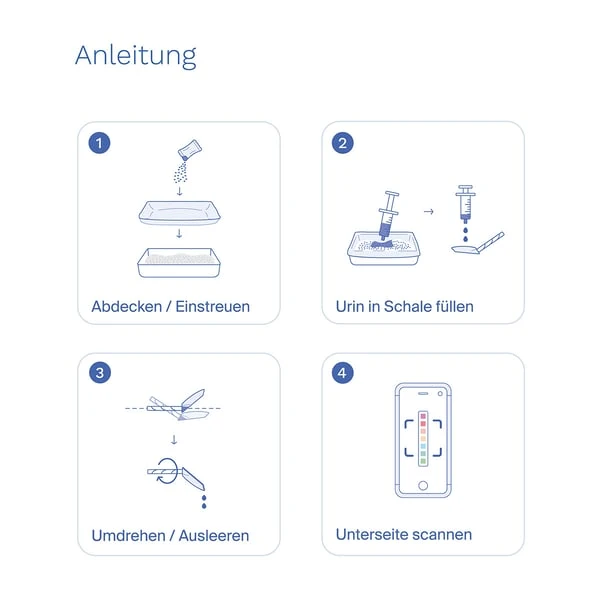 Im Mehrkatzenhaushalt sollte die Katzentoilette nur jener Katze zugänglich sein, von der die Urinprobe benötigt wird. Kannst du nicht durchgehend ein Auge auf die Katzentoilette haben, empfehlen wir die Katzen kurzzeitig räumlich zu trennen.