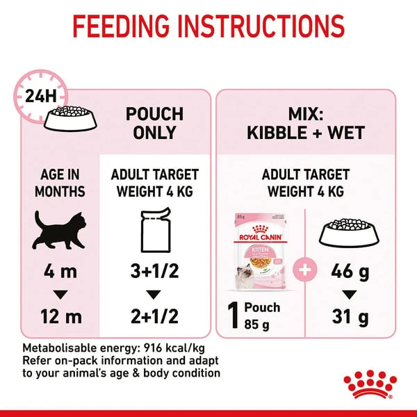 ROYAL CANIN Kitten in Gelee wurde speziell entwickelt, um einfaches Kauen zu ermöglichen und eignet sich ebenso für die Fütterung von Katzenmüttern.
