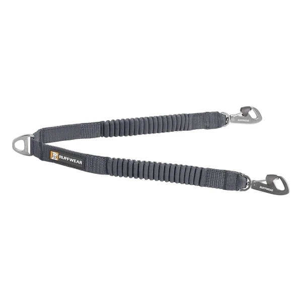Der Ruffwear Double Track Coupler ist eine einfache Ergänzung für Hundeleinen, um zwei Hunde gleichzeitig ohne Verheddern an der Leine zu führen. Das dehnbare Wavelength Gurtband puffert ruckartiges Anspannen der Leinen ab, was für alle drei angenehmer ist.