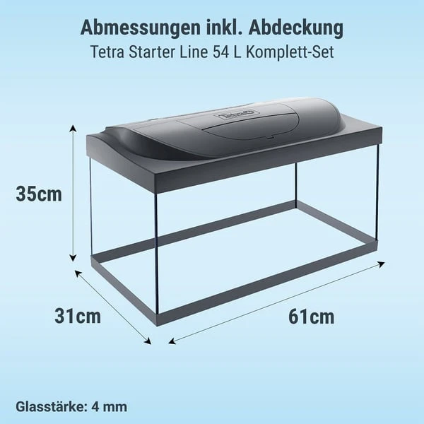 - Abmessungen Aquarium inkl. Abdeckung (BxHxT): 61 x 35 x 31 cm
