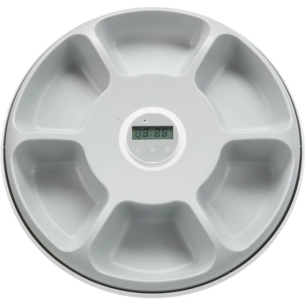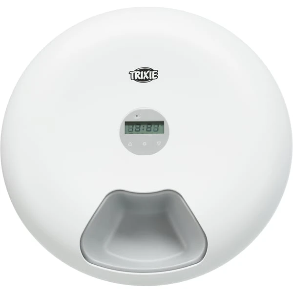 Bei dem Trixie Futterautomat TX5+1 lĂ€sst sich die Uhrzeit fĂŒr die FĂŒtterung, egal ob Trocken- oder Nassfutter, einfach programmieren fĂŒr 6 Mahlzeiten Ă 180 ml. Ein Einklemmschutz verhindert Verletzungen der Tierpfoten wĂ€hrend der Futterautomat rotiert. Die Futterschalen können im Anschluss bequem in der SpĂŒlmaschine gereinigt werden.
