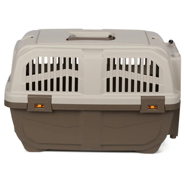 Praktische Transportbox aus Kunststoff, mit stabiler Metalltür und verriegelbaren Schnappverschlüssen. Auf der Oberseite befindet sich ein Tragegriff und die Belüftungsschlitze sorgen für eine optimale Luftzirkulation. Wenn Sie mit Ihrem Hund per Flugzeug verreisen, sind die flugreisegeeigenten Transportboxen die optimale Lösung für Sie und Ihren Liebling. Die Transportboxen erfüllen die hohen Sicherheitsstandards von der IATA (International Air Transport Association) und haben eine hohe Luftzirkulation. Die Boxen erhalten Sie in verschiedenen Größen.