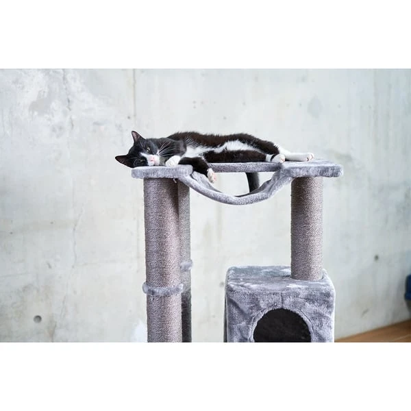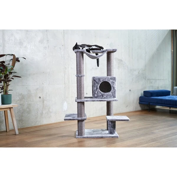 Bei dem modernen ZooRoyal Kratzbaum Leni in Grau bleiben keine Wünsche deiner Katze offen: Er verfügt über viele Liegeflächen, einer kuscheligen Höhle, einer Hängematte und vielen Kratzflächen aus natürlichem Sisal. Nach dem Krallen wetzen, Klettern und Spielen kann sich deine Katze auf den beiden großen Liegeflächen oder in der kuscheligen Höhle entspannt zurückziehen und ausruhen.