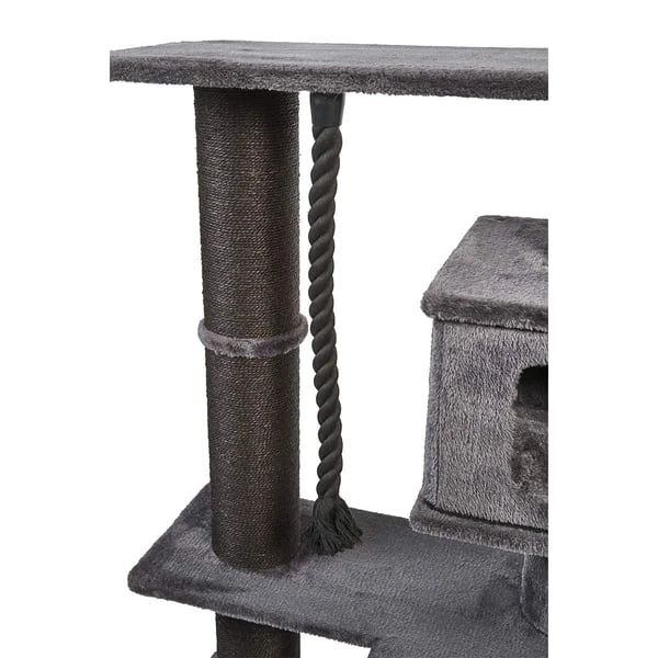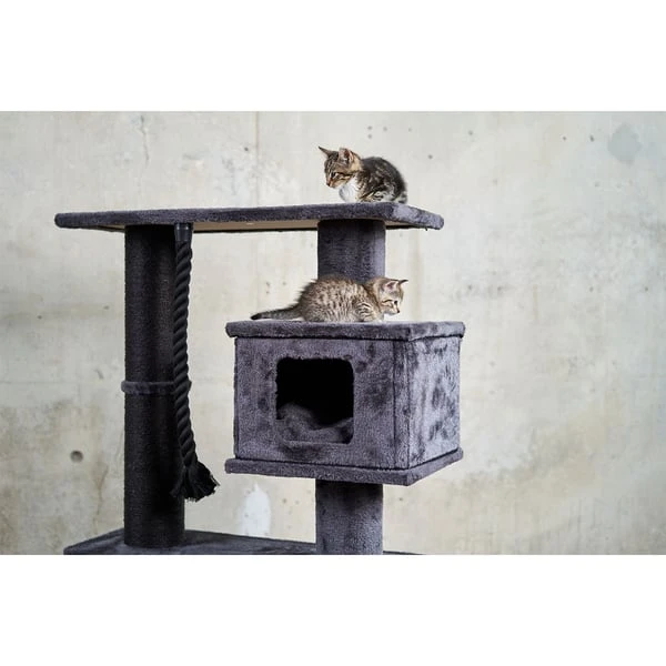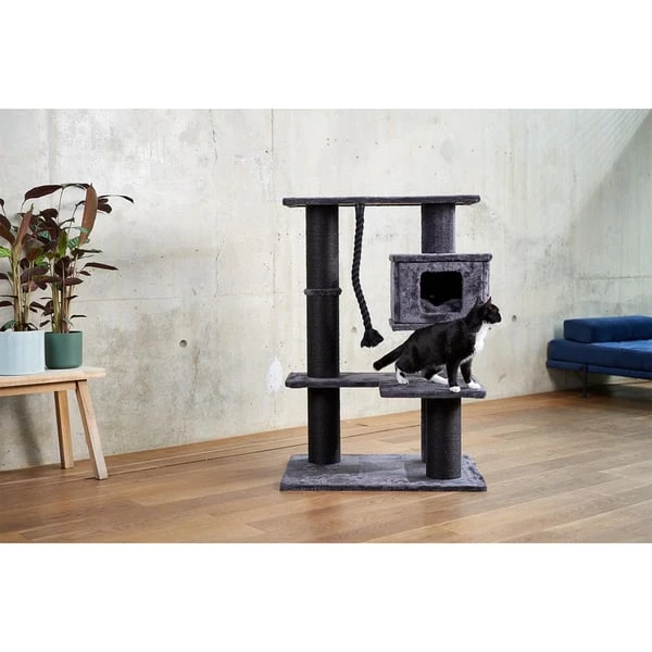 Bei dem modernen ZooRoyal Kratzbaum Lucia in Anthrazit bleiben keine Wünsche deiner Katze offen: Er verfügt über 4 Liegeflächen, eine kuschelige Höhle mit maschinenwaschbarem Kissen, extra dicke Kratzstämme mit viel Kratzfläche aus natürlichem Sisal und einem Seil zum Spielen. Nach dem Krallen wetzen, Klettern und Spielen kann sich deine Katze auf den drei großen Liegeflächen oder in der kuscheligen Höhle entspannt zurückziehen und ausruhen.