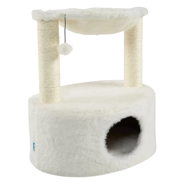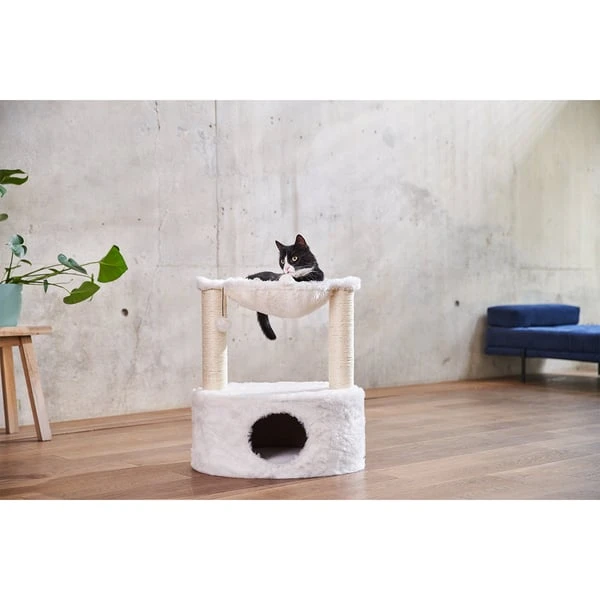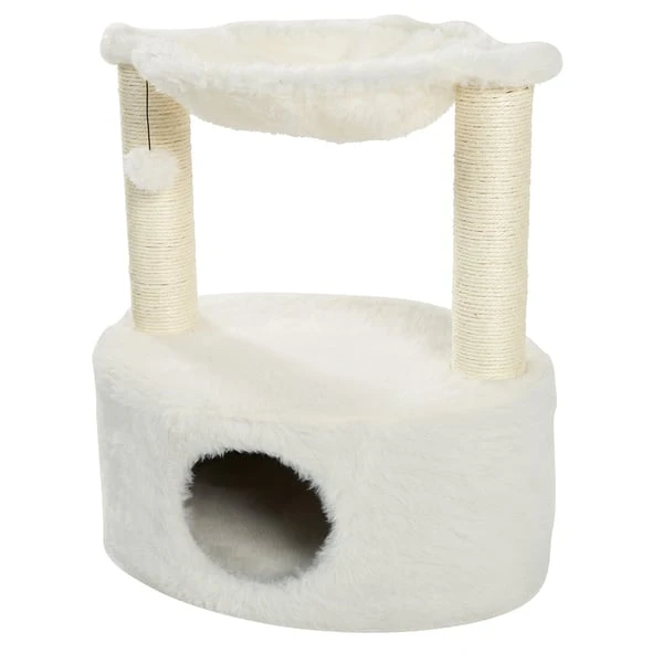 Der ZooRoyal Kratzbaum Nora ist ein kompakter, schöner Kratzbaum, der deinen Haustiger mit vielfältigen Möglichkeiten zum Klettern, Spielen, Beobachten und Schlafen begeistern wird. Die cremefarbenen Kratzstämme aus Sisal laden zum Krallenwetzen ein. Danach kann deine Katze mit dem Spielzeug Ball am Seil spielen und sich anschließend in der Höhle oder auf der Liegefläche ausruhen. Die Montage des Kratzbaumes Nora ist zudem einfach.